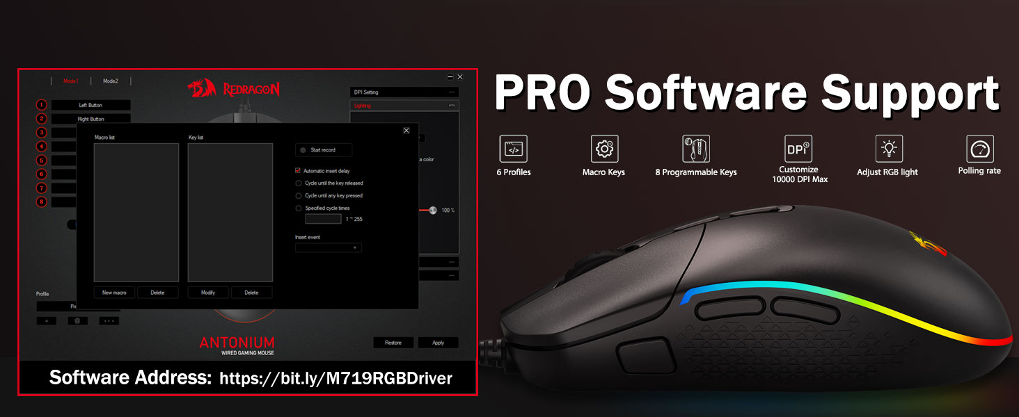 Yazılım Desteği -Kendi yeni modlarınızı ve efektlerinizi tasarlamak için mevcut yazılımı kullanarak seçeneklerinizi genişletin. Daha verimli çalışma ve oyun oynama için farklı tuş atamalarına veya kısayollara sahip makrolar. Yazılım linki: bit.ly/K524WiredDriver