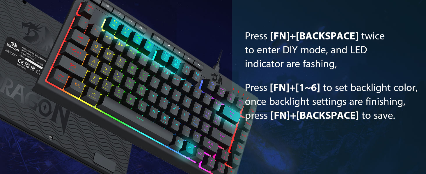 Gerçek RGB Arka Işık -Tam dinamik RGB arka aydınlatma, yalnızca hayal gücünüzle sınırlı olan sayısız aydınlatma olanağına olanak tanır. Klavye, önceden ayarlanmış 8 aydınlatma modu ve özelleştirilebilir modlar için ek 6 yuvayla birlikte gelir. Kart ayrıca, aydınlatmaya ihtiyacınız yoksa çok parlaktan tamamen kapalıya kadar değişen parlaklık kontrolüne de izin verir.