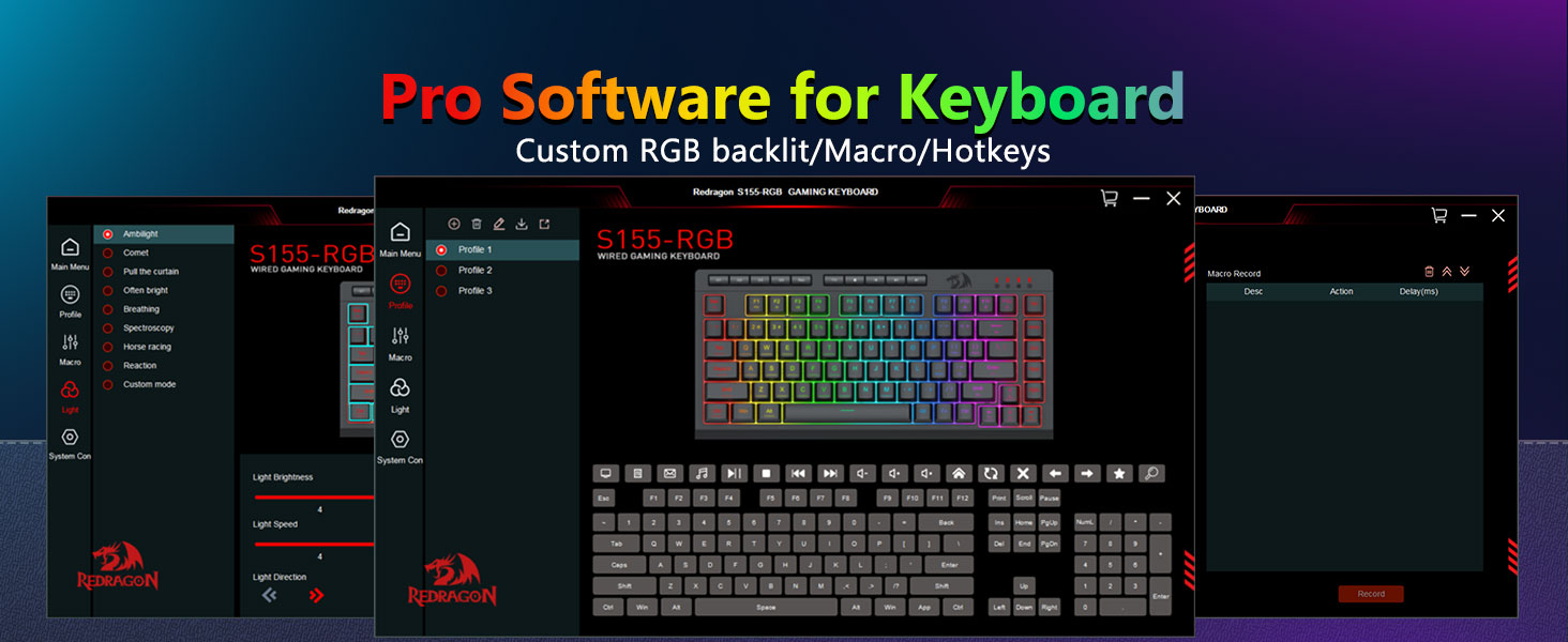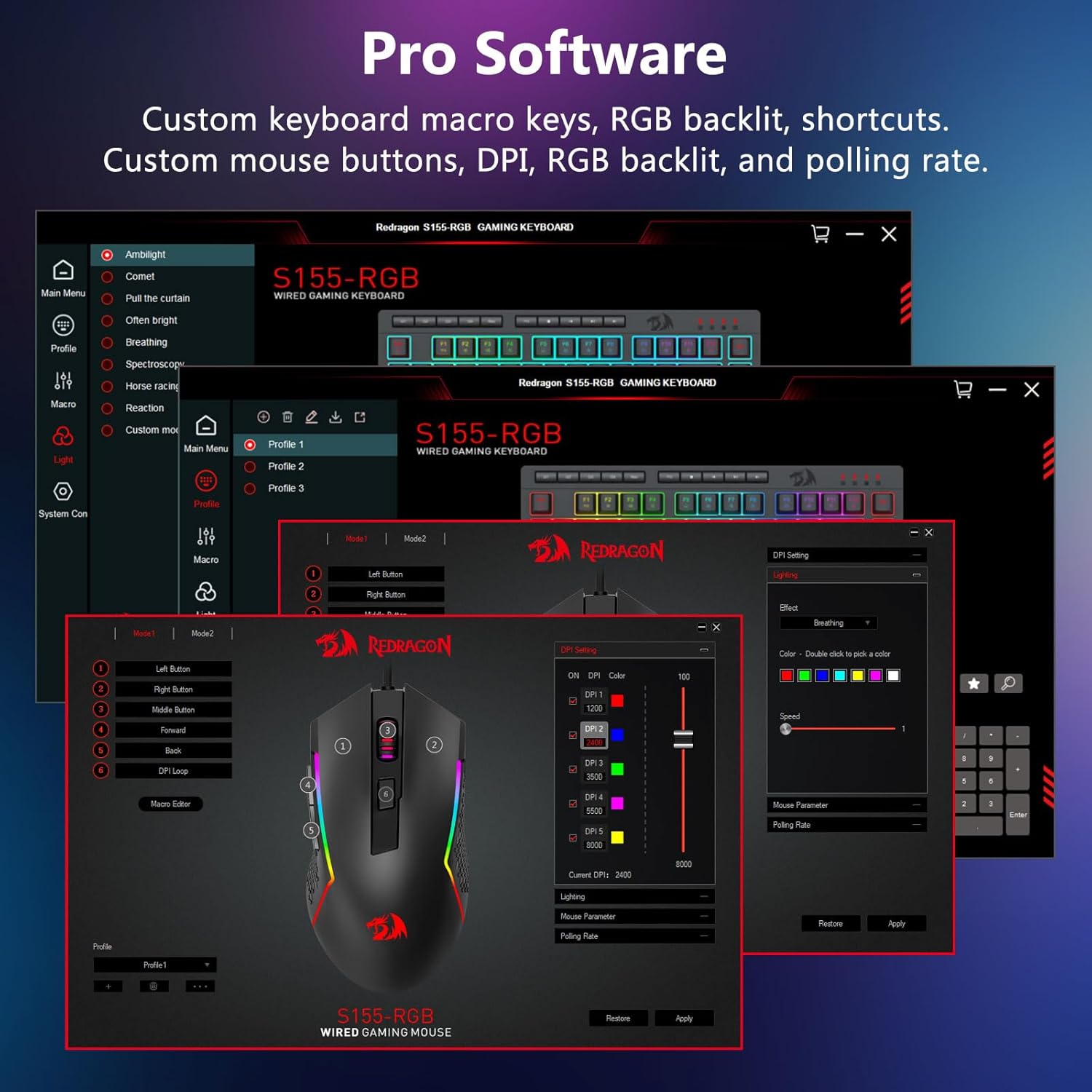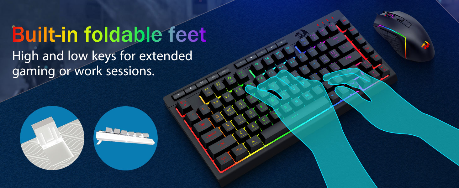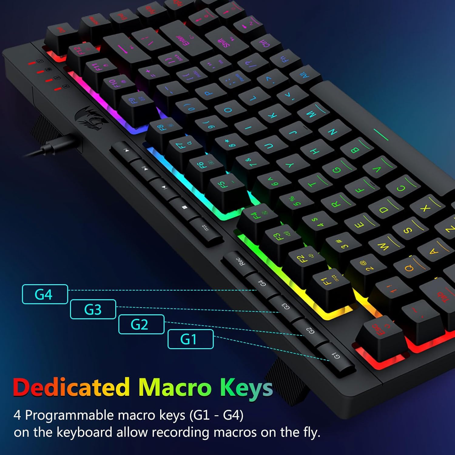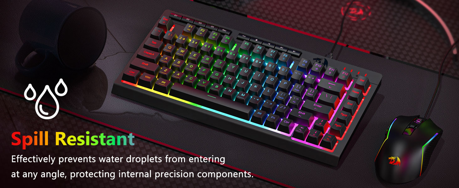 [RGB Oyun Klavyesi ve Faresi]Oyun klavyesinde seçim yapabileceğiniz 8 RGB aydınlatma modu bulunur ve oyun faresinde aralarında geçiş yapabileceğiniz 8 aydınlatma efekti bulunur ve klavye, tercihinize uyacak şekilde 4 seviyeli hız ve parlaklık için ayarlanabilir. Tuş kapakları net, düzgün bir arka aydınlatma sunar. Set ister tek ışıklı, ister değişen ışık efektleri olsun, isterse hiç ışıksız olsun, Redragon oyuncu klavyesi ve faresi ihtiyaçlarınızı karşılayacak!