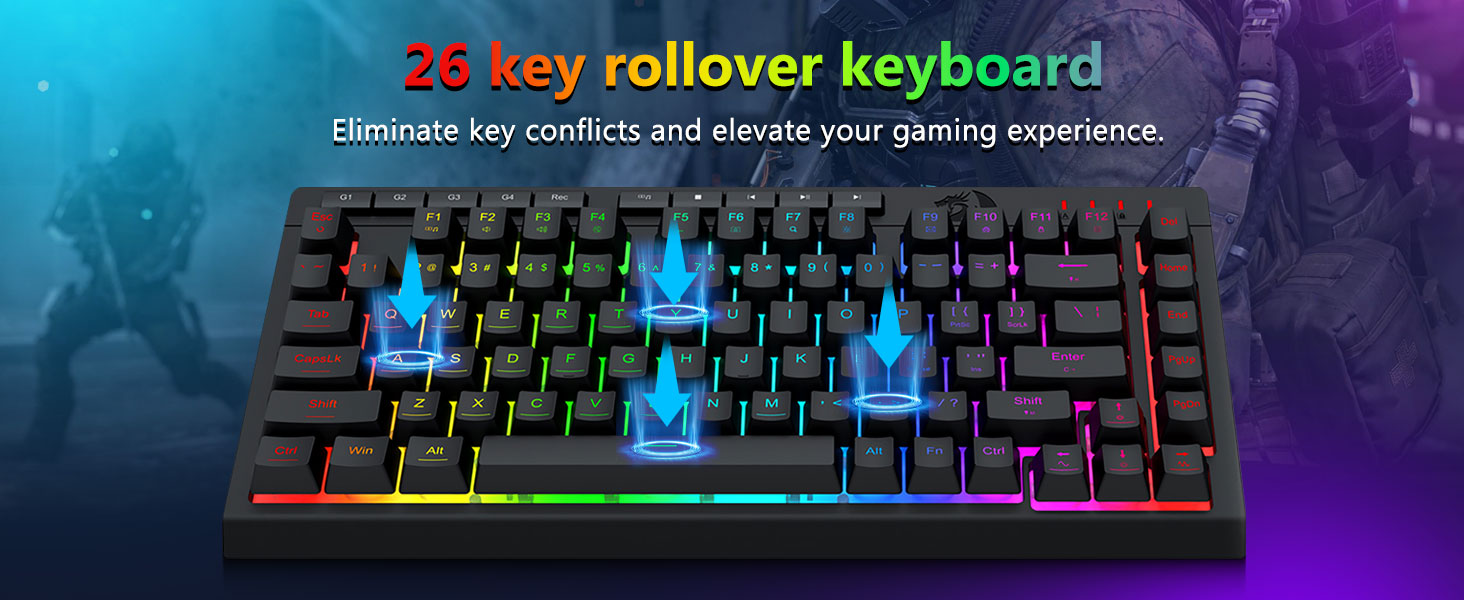 [Rahat Oyun Oynama]Klavyenin katlanabilir standı, cilt dostu kaplaması ve kayan tuş başlıkları yazma konforunu artırır. 26 Tuş Gölgelenmeyi önleme, her düğmenin tetiklenebilmesini sağlar. WIN tuşu oyun oynamak için devre dışı bırakılabilir. Bu klavye ve fare, maksimum konfor sağlarken verimli bir oyun deneyimi sağlamaya adanmıştır