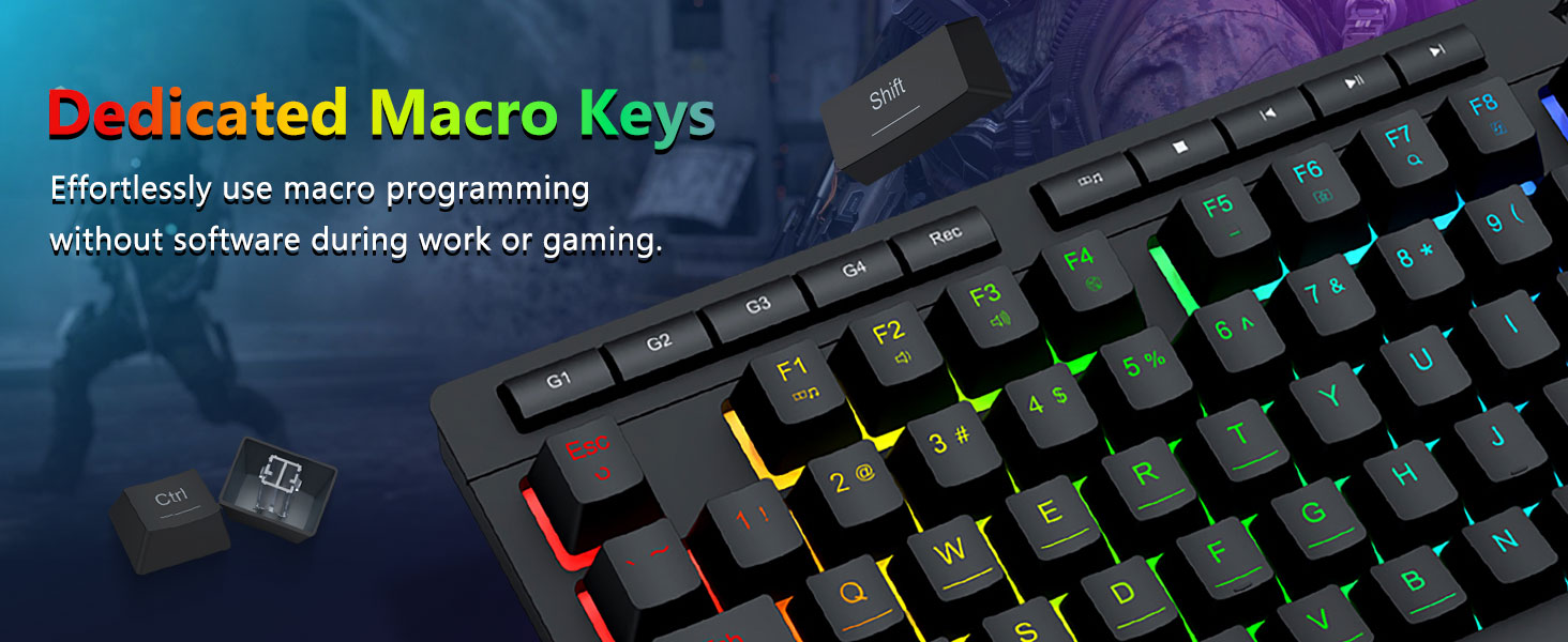 [Verimli ve Kullanışlı]Bu oyun klavyesi ve fare kombinasyonu, kullanımı basit ve kullanışlı olan 4 yerleşik makro tuşu, 5 bağımsız Multimedya tuşu ve 12 FN Multimedya Fonksiyon Tuşuyla donatılmıştır. Yalnızca verimliliği artırmakla kalmaz, aynı zamanda oyun sürecinizi daha rahat ve hızlı hale getirir