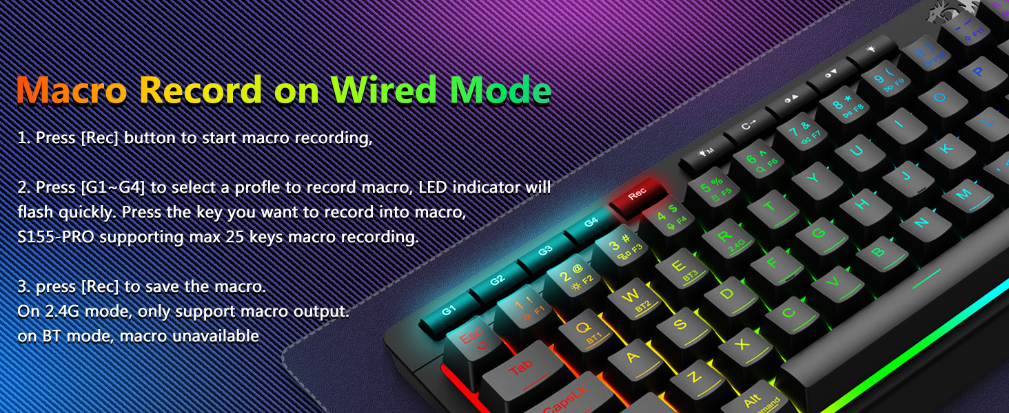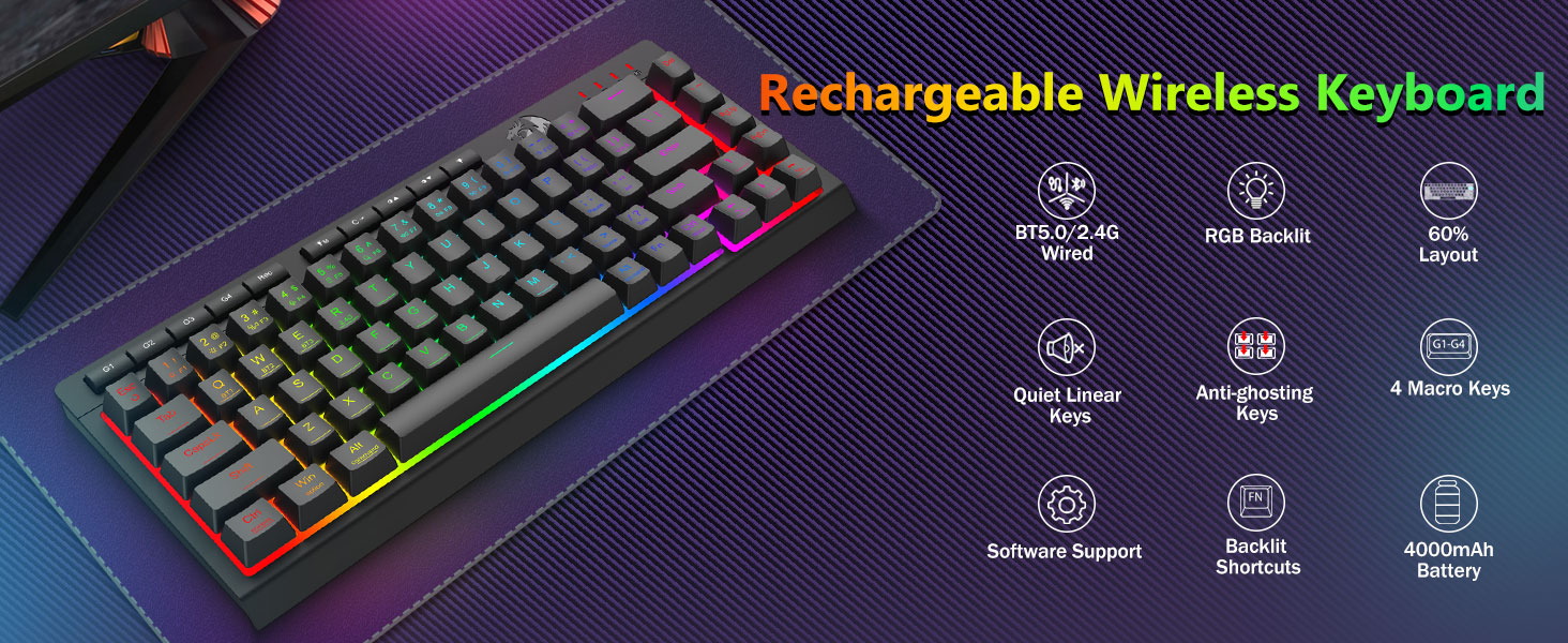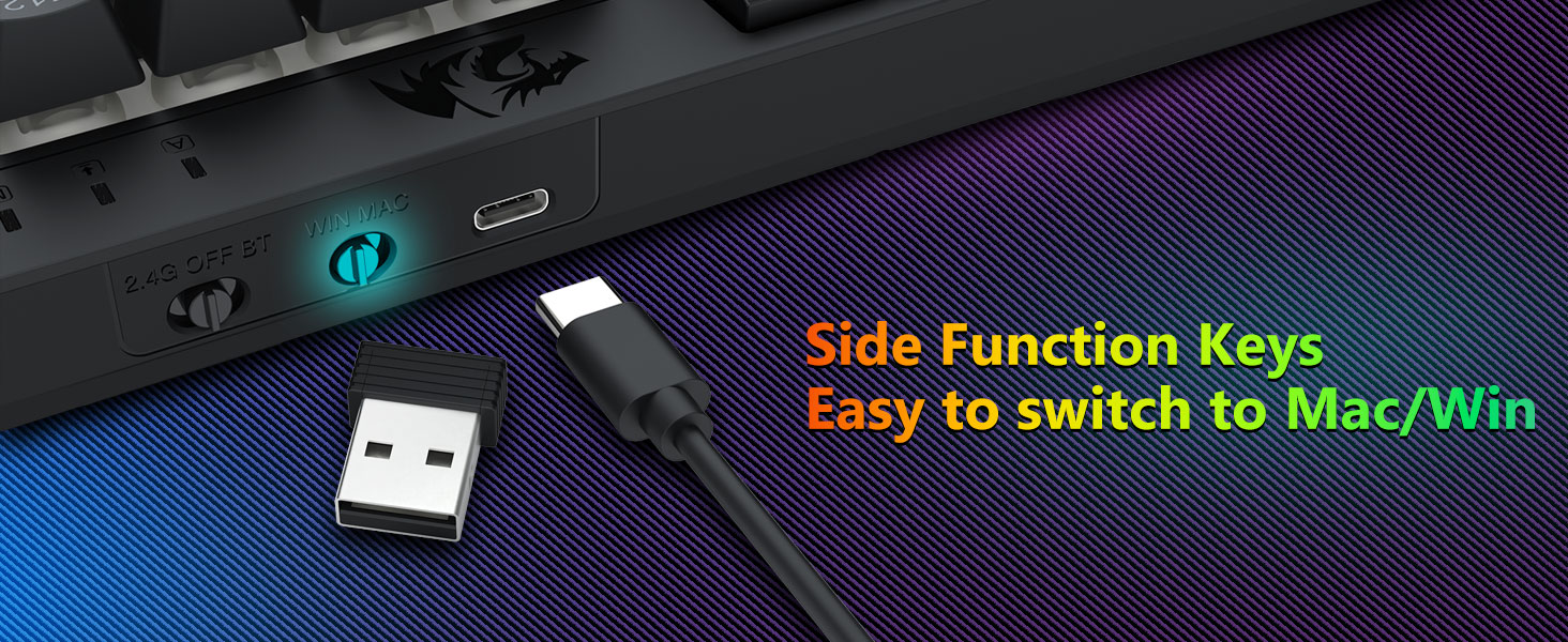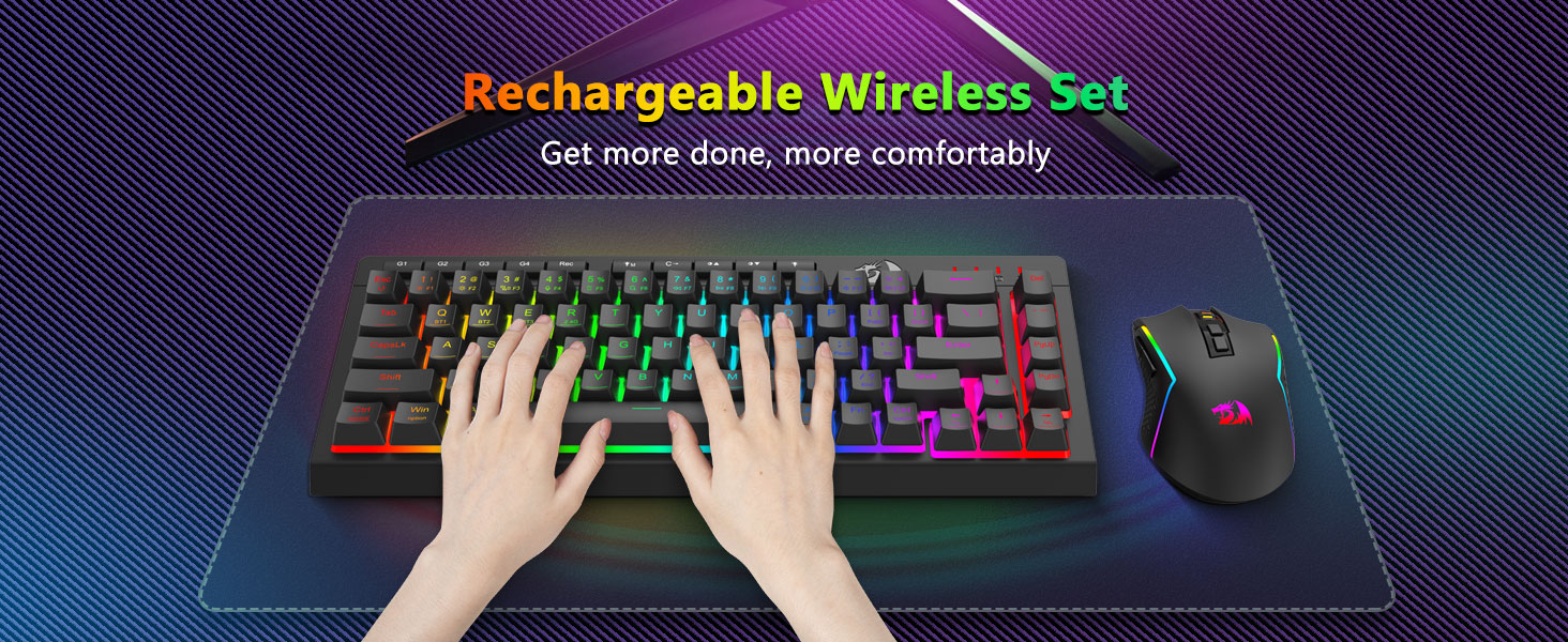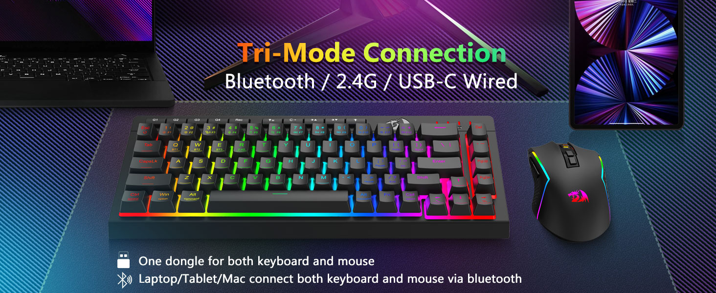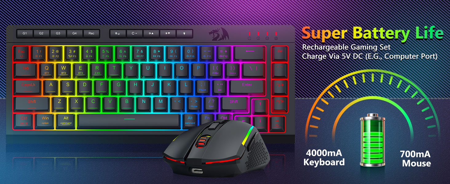 Üç Modlu Çok Yönlü Klavye ve Fare- Farklı cihazlara (PC, Mac, tabletler, telefonlar, PS/XBOX) bağlanarak Bluetooth 5.0, 2,4 GHz kablosuz veya USB-C kablolu modları arasında sorunsuz geçiş yapın. Kısayol tuşları veya yan düğme aracılığıyla cihazlar arasında zahmetsizce geçiş yapın; hibrit çalışma/oyun kurulumları için mükemmeldir. 4.000 mAh pilli klavye ve 700 mAh pilli Fare (30+ gün bekleme, 50 saat RGB çalışma süresi) ile haftalarca gücünüzü koruyun.