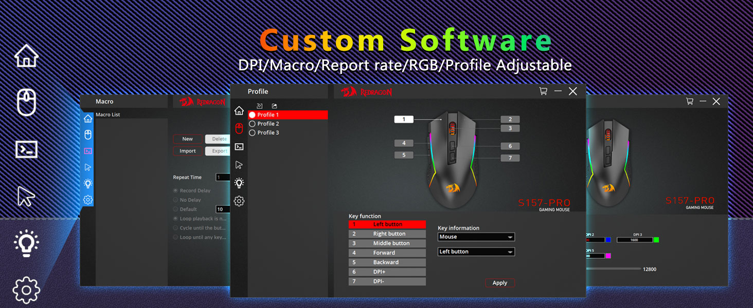 Maksimum 12800 DPI AyarlanabilirKlavye yazılımı: bit.ly/S157keyboard, Fare yazılımı: bit.ly/S157mouse