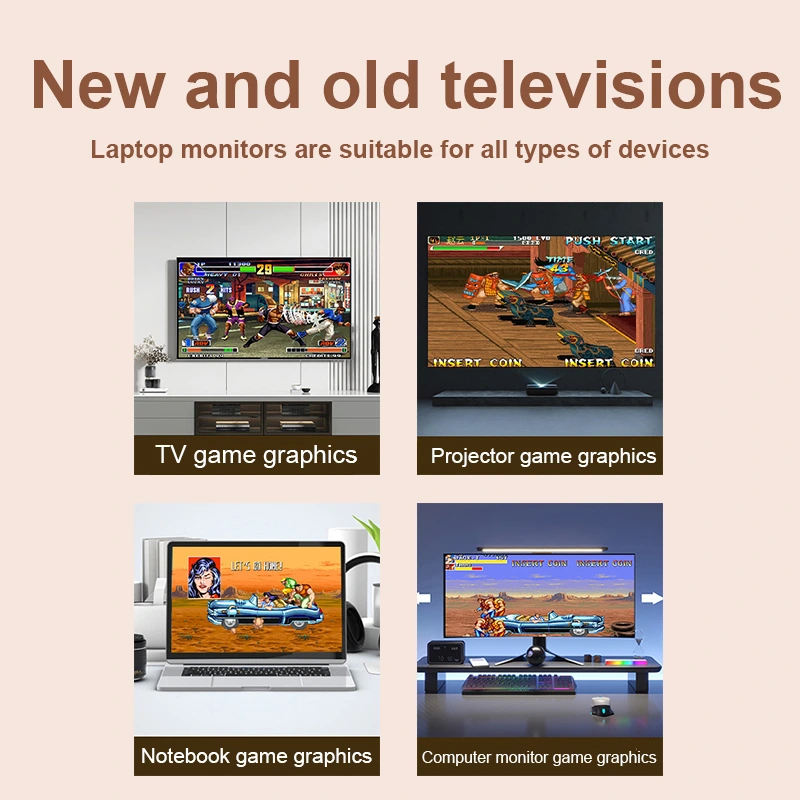 ❤ ❤ 4K HDMI Çıkışı retro Retro oyun konsolu, daha net görüntü kalitesiyle 4K HD çıkışını destekler, TV'ye bağlanan mini HDMI kablosunu kullanarak büyük bir TV ekranında retro video oyunlarının keyfini çıkarabilirsiniz. Lütfen ekranınızın bir HDMI giriş bağlantı noktasına sahip olduğundan emin olun. Kablosuz TV oyun konsolu TV/TV Set Üstü Kutusuna/PC/Dizüstü Bilgisayara/Projektöre bağlanabilir. Retro oyun çubuğu aynı zamanda oyun ilerlemesinin kaydedilmesini de destekler; bu da istediğiniz zaman oyun oynamak için mükemmeldir.