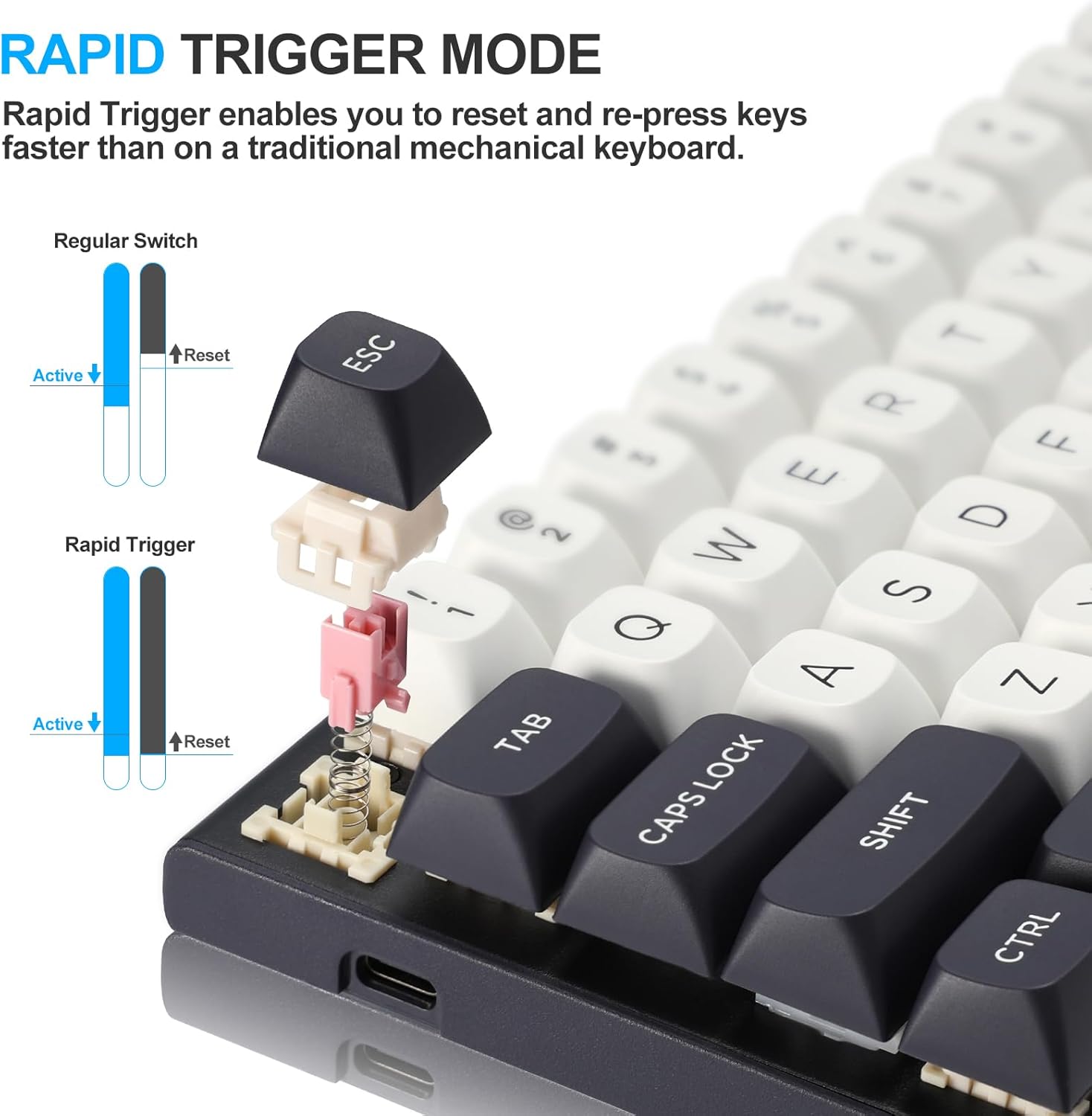 Hızlı tetikleme işlevi, sabit bir sıfırlama noktası beklemek yerine, tuşların bırakıldığında anında sıfırlanmasına olanak tanır. Bu, daha hızlı tekrarlanan tuş vuruşlarına ve daha hassas kontrole olanak tanır; özellikle FPS veya ritim tabanlı oyunlar gibi rekabetçi oyun senaryolarında kullanışlıdır.