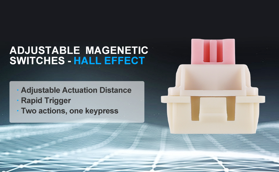 C: Manyetik anahtarlar, tuş hareketini algılamak için Hall etkisi sensörlerini kullanır ve ayarlanabilir çalıştırma noktalarına ve tutarlı performansa olanak tanır. Bu, aşınmayı azaltır ve geleneksel mekanik anahtarlara kıyasla daha yumuşak bir yazma deneyimi sağlar.