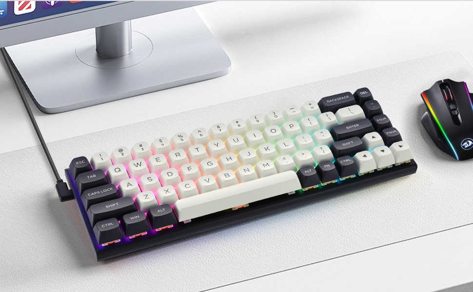 Klavye, hem oyun hem de profesyonel ortamlara uygun, temiz beyaz veya mavi-siyah renk şemasıyla minimalist bir tasarımı benimsiyor. Kompakt yapı, kullanıcıların daha organize bir çalışma alanına sahip olmalarını sağlar.