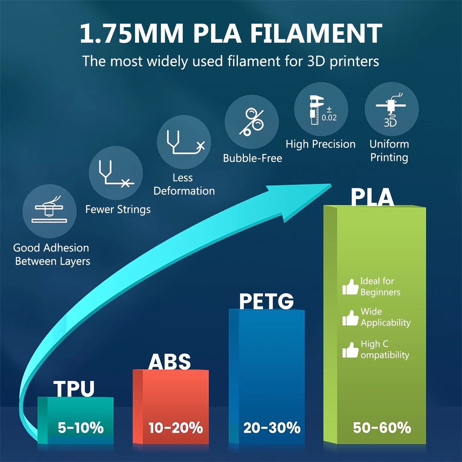 PLA filamanı nispeten düşük sıcaklıklarda erir ve karmaşık yazıcı konfigürasyonları gerektirmez; bu da onu hem yeni başlayanlar hem de deneyimli kullanıcılar için uygun kılar.