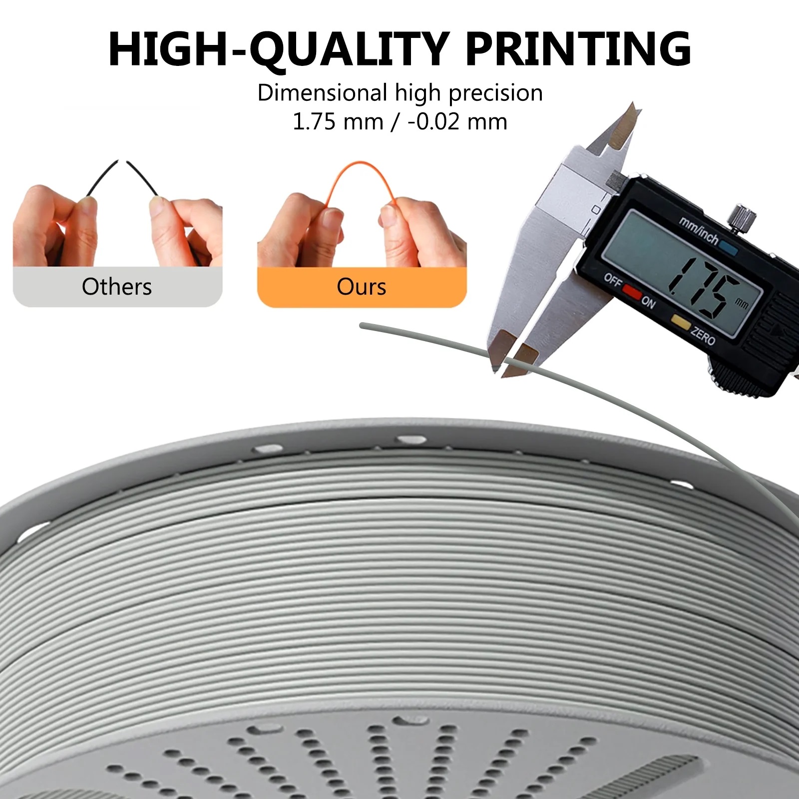Birinci sınıf Beyaz PLA 3D Yazıcı Filamenti PLA Filamenti 1,75 mm, tutarlı performans sağlamak için sıkı üretim kontrolünden geçer.