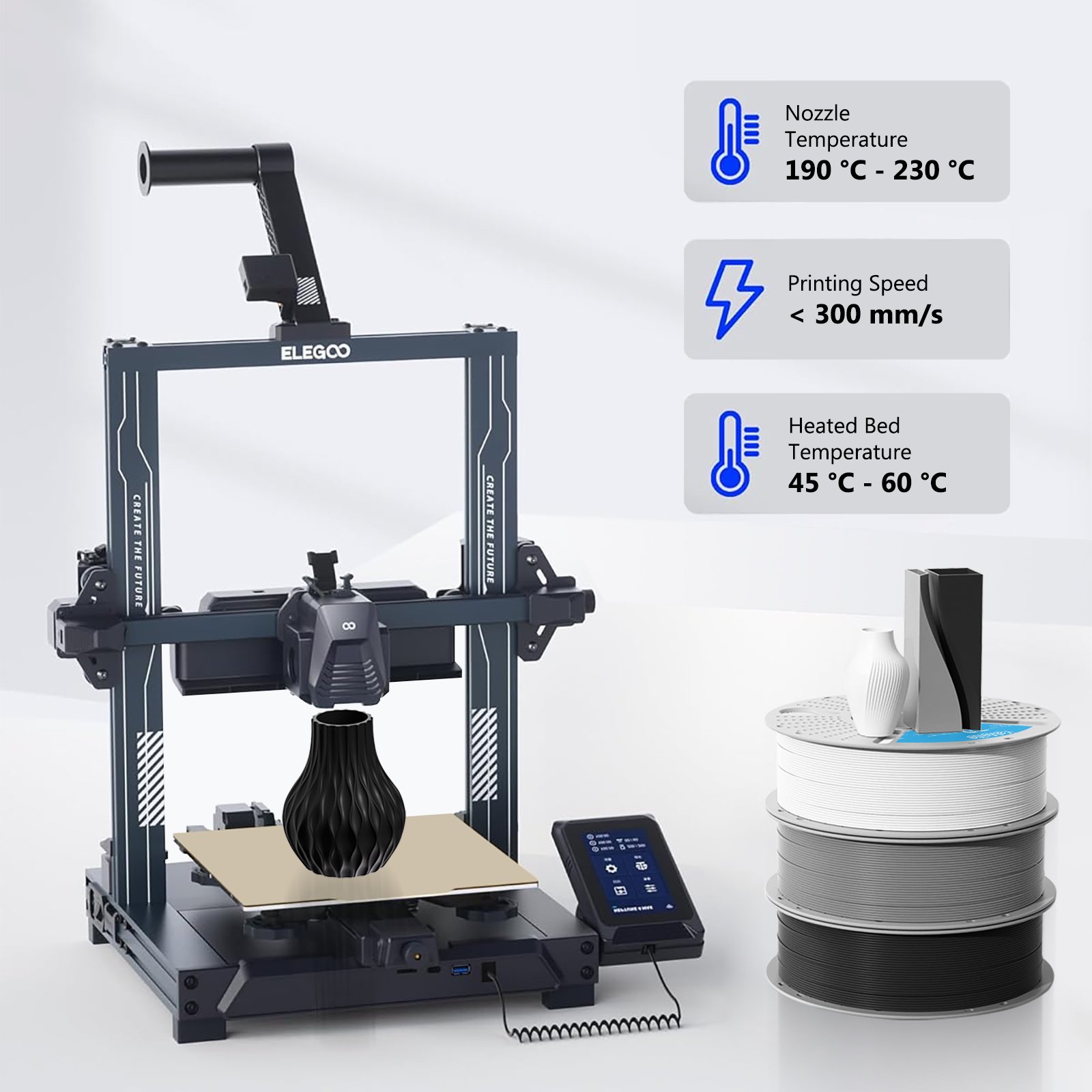 Gelişmiş ekstrüzyon teknolojisi, tutarlı filaman çapını ve yuvarlaklığını koruyarak 3D yazıcı ekstrüderleri aracılığıyla güvenilir besleme sağlar.