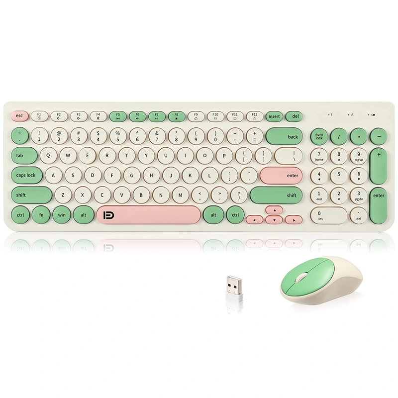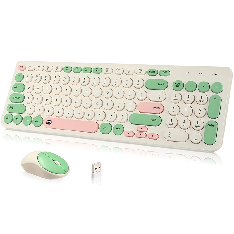 Kablosuz Klavye ve Fare 2,4 GHz Kombinasyon, Yuvarlak Tuş Başlıklı Retro Daktilo, 104 Tuşlu Masaüstü, Dizüstü Bilgisayar ve Bilgisayar için Tam Boyutlu USB Sessiz Sevimli Fare